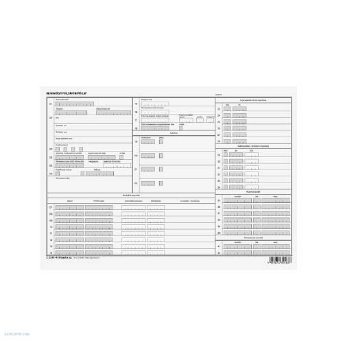 Fekvő formátumú munkaügyi nyilvántartó okmány