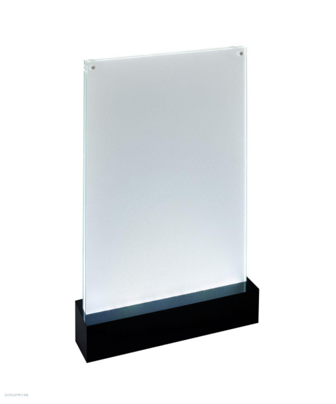 Asztali laptartó LED világítással, kétoldalas, akril anyagból készült, felül átlátszó, alul fekete.