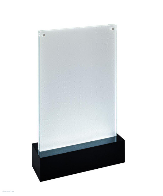 Asztali laptartó LED világítással, kétoldalas, akril anyagból készült, felül átlátszó, alul fekete.