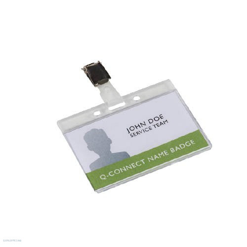 Átlátszó műanyagból készült névkitűző, csíptetővel.