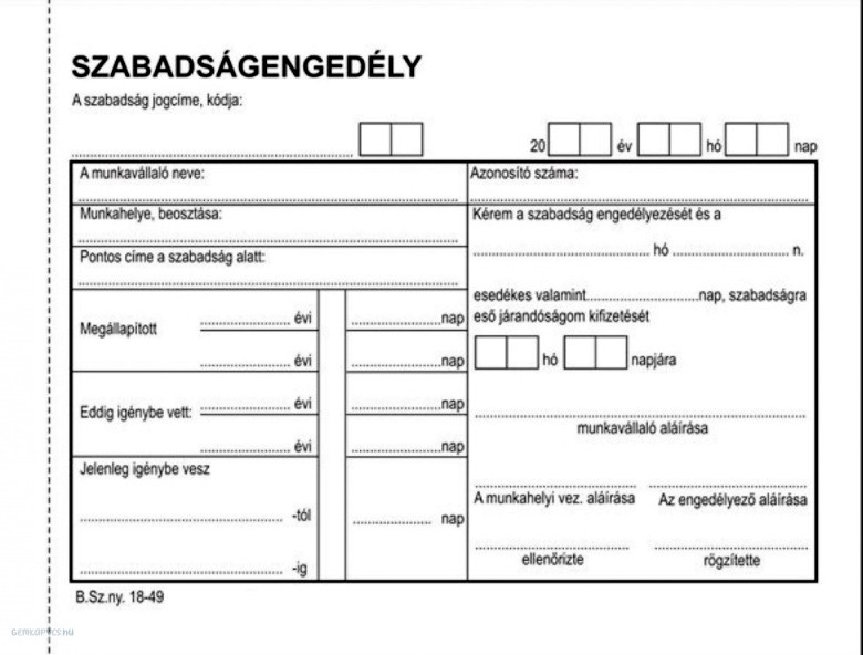 Szabadságengedély nyomtatvány 50x2 lapos kiszerelésben
