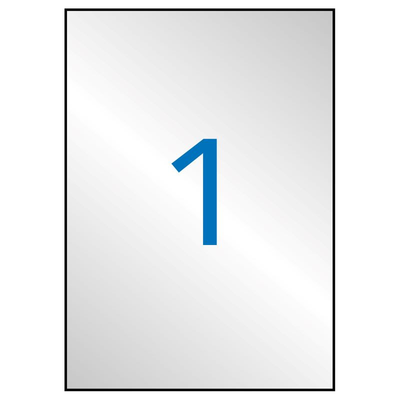 A címkék 210x297 mm-esek, egy A4-es lapon 1 darab található, a csomagban pedig 20 db A4-es lap.