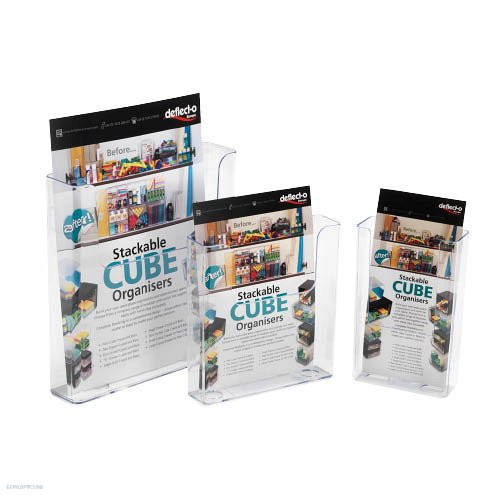 Áttetsző, műanyagből készült, falra rögzíthető prospektustartók A/4-es anyagok számára.