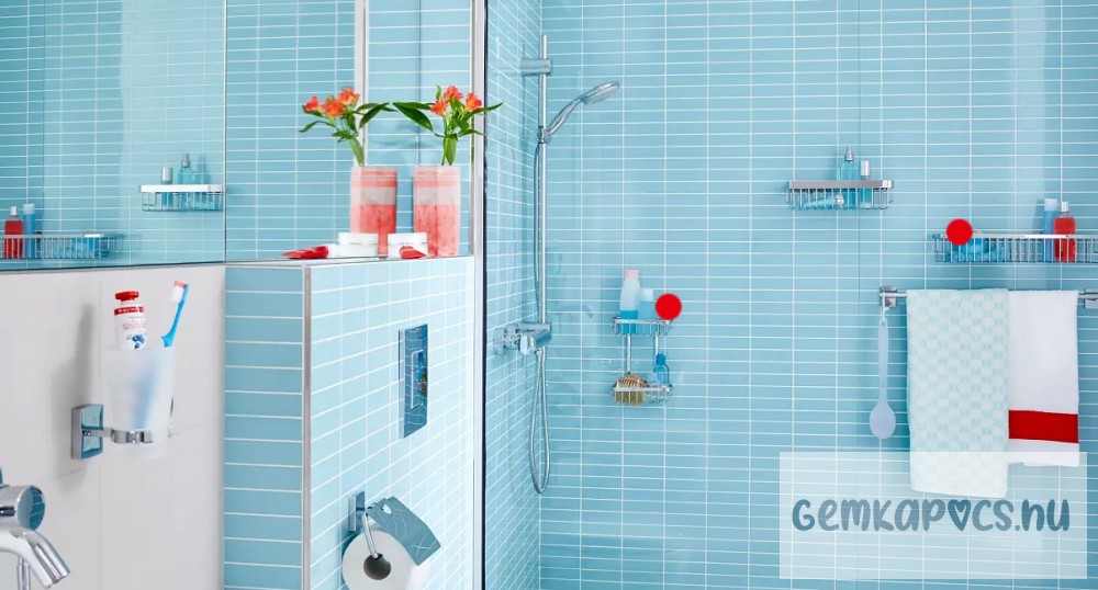 Rozsdamentes acél zuhanykosár, szabadalmaztatott tesa® Power.Kit technológiával (átfogó ragasztós rögzítési megoldás).