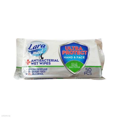 Törlőkendő nedves Lara med higiénikus antibakteriális 50 db/csomag
