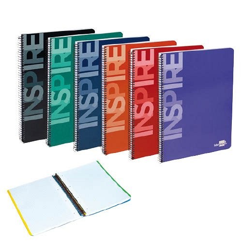 Erős, kartonfedeles, college típusú spirálfüzet lyukasztott, perforált lapokkal, vegyes színekben, 60 g/m2 tömegű papírlapok.