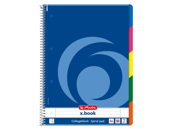 Spirálfüzet Herlitz Collegeblock, A/4, vonalas, 100 lap, színregiszteres