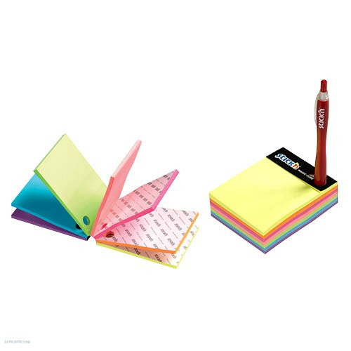 Színenként legyezőben szétnyíló tömb, vegyes neon színekben, ceruzatartóval.