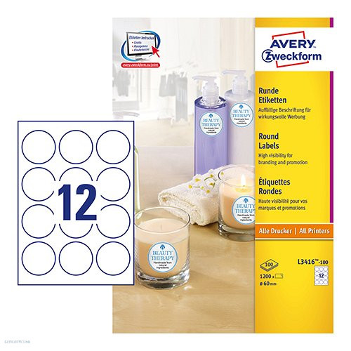 Etikett címke speciális L3416-100 fehér kör 60 mm 100 ív Avery