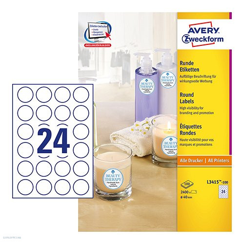 Etikett címke speciális L3415-100 fehér kör 40 mm 100 ív Avery