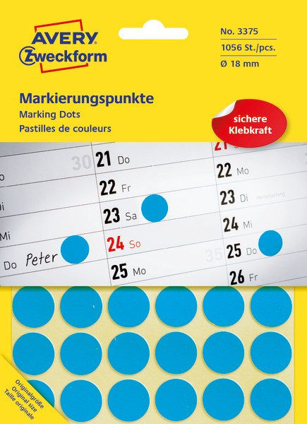 Etikett öntapadó 18mm 1056db jelölőpont Avery kék