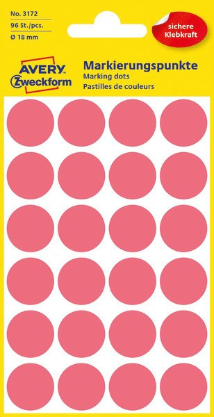 Etikett öntapadó 18mm 96 jelölőpont Avery neonpiros
