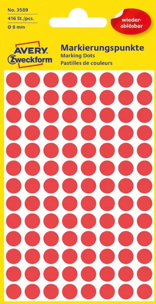 Etikett címke speciális visszaszedhető 3591, 8 mm 4 ív Avery piros