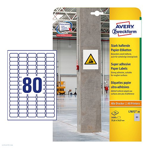 Etikett címke szuper tapadású - L7872-20 fehér 35,6 x 16,9 mm Avery