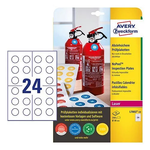 Etikett címke eltávolíthatatlan plakettek nyomtatható, 30mm, Avery fehér