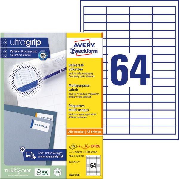 Etikett címke univerzális 3667-200 48,5x16,9mm 220ív Avery fehér