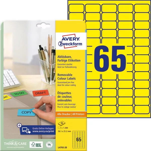 Etikett címke speciális L4791-20 visszaszedhető 38,1x21,2mm 20ív Avery sárga