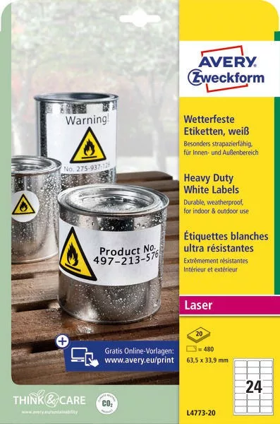 Etikett címke speciális L4773-100 időjárásálló poliészter 63,5x33,9mm 100ív Avery fehér