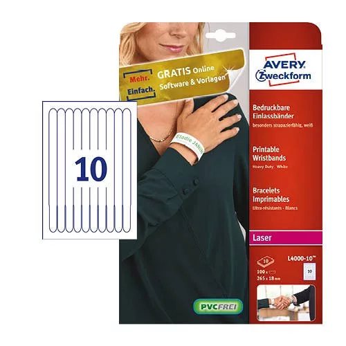Etikett nyomtatható karszalag 265x18mmAvery 100db/dob fehér