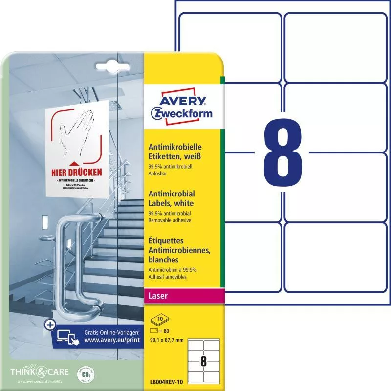 Etikett fóliacímke antimikrobiális visszaszedhető 99,1x67,7 mm Avery 10ív fehér