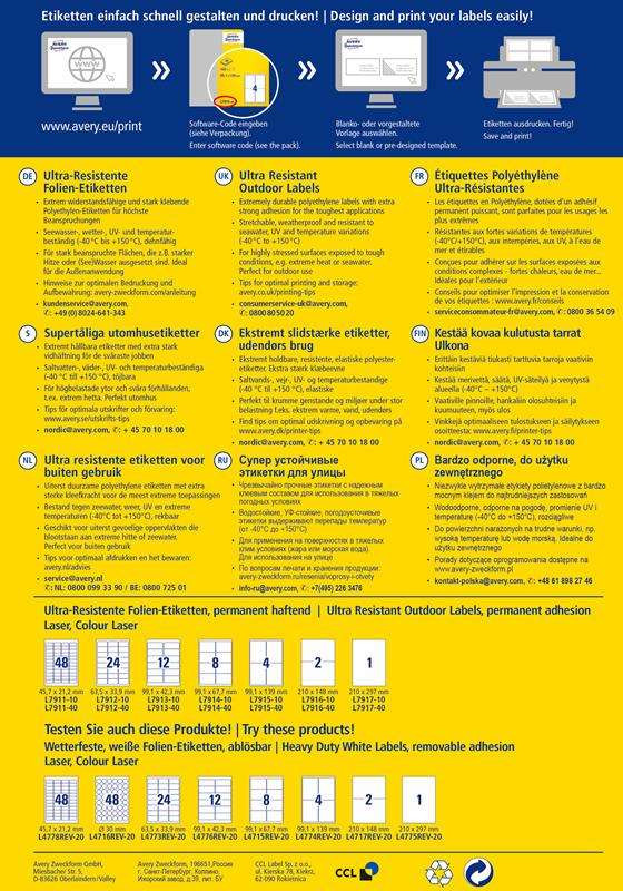 Etikett címke B3427-50 ultra ellenálló 105x74mm 50ív fehér Avery fehér