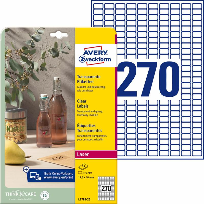 Etikett címke speciális L7785-25 víztiszta átlátszó 17,8x10mm 25ív Avery