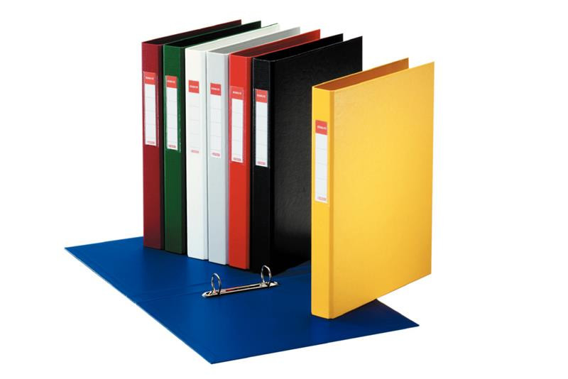 Gyűrűskönyv a lyukasztott lapok helytakarékos tárolásához.