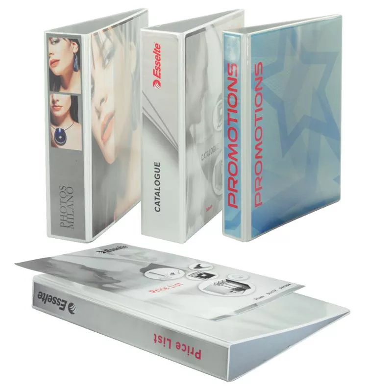Kiválóan alkalmas dokumentumok, árlisták vagy egyéb prezentációs anyagok bekötésére, tárolására, mert a borítót fedő áttetsző fóliatasak alá bármilyen saját készítésű anyag betehető.