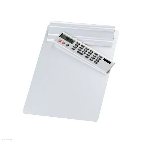 Alumínium felírótábla számológéppel, erős csipesszel, A4-es méretű lapok számára.