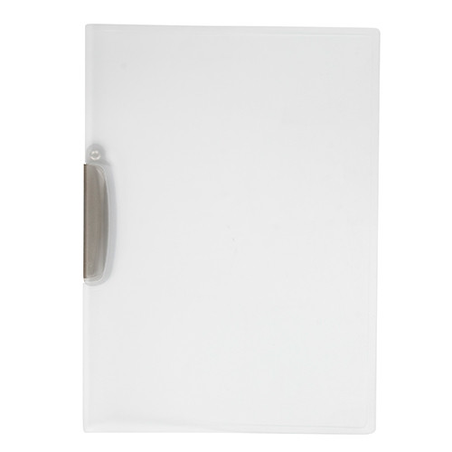 Klipmappa áttetsző színekben, átlátszó műanyag leszorítócsattal.