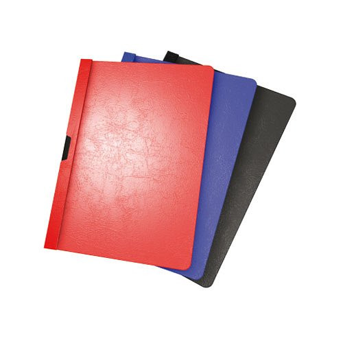 Klipmappa átlátszó előlappal, színes hátlappal és fekete, fém leszorítócsattal.