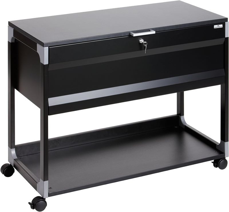 A kocsihoz tartozik egy masszív alsó polc is, megemelt élekkel, további iratrendezők tárolásához.