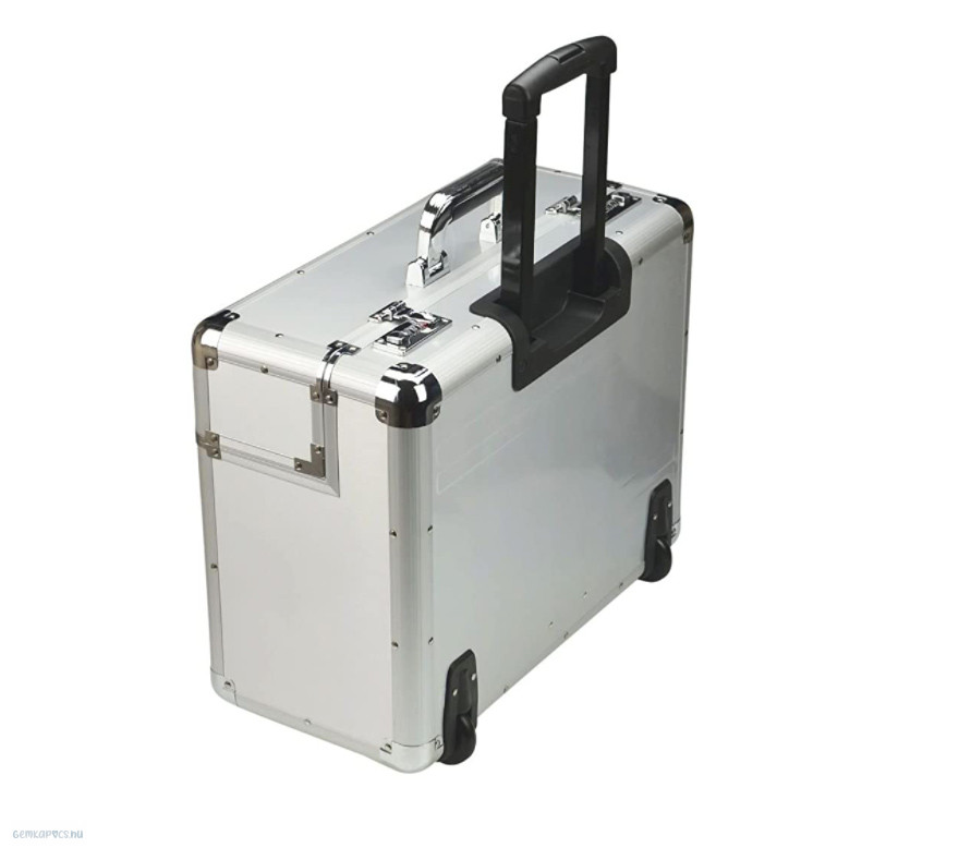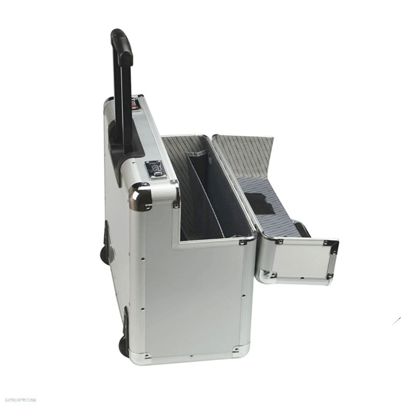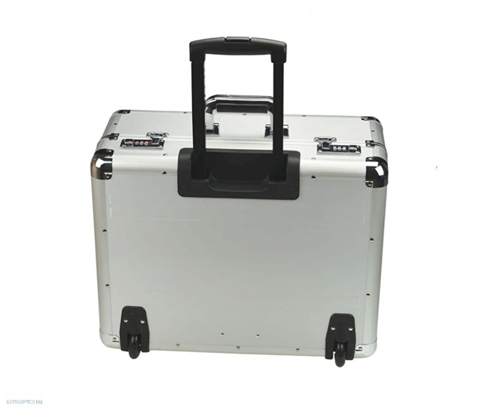 Alumínium pilótatáska teleszkópos fogantyúval, megerősített élekkel, két számkombinációs zárral.