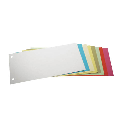 Karton anyagú (190 g), színes elválasztócsíkok szabványos lyukasztással.