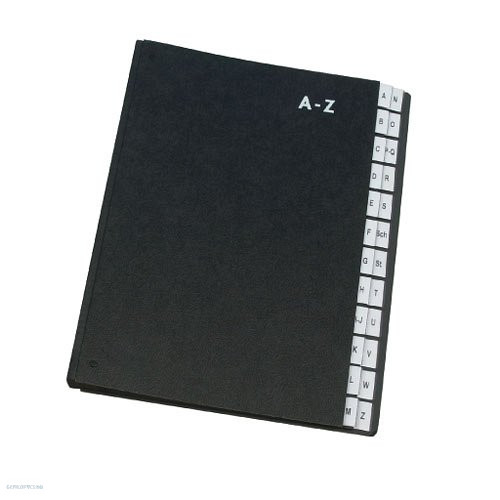 A-Z regiszteres, feliratozható borító, flexibilis gerincű