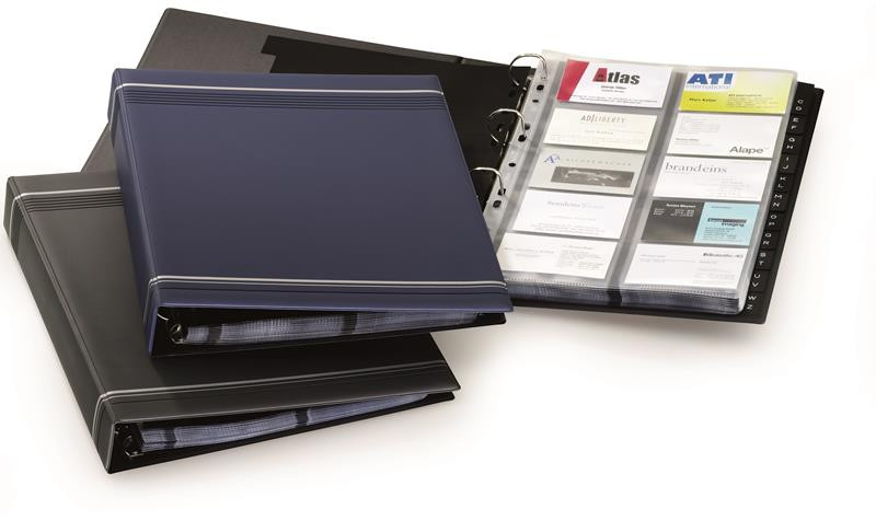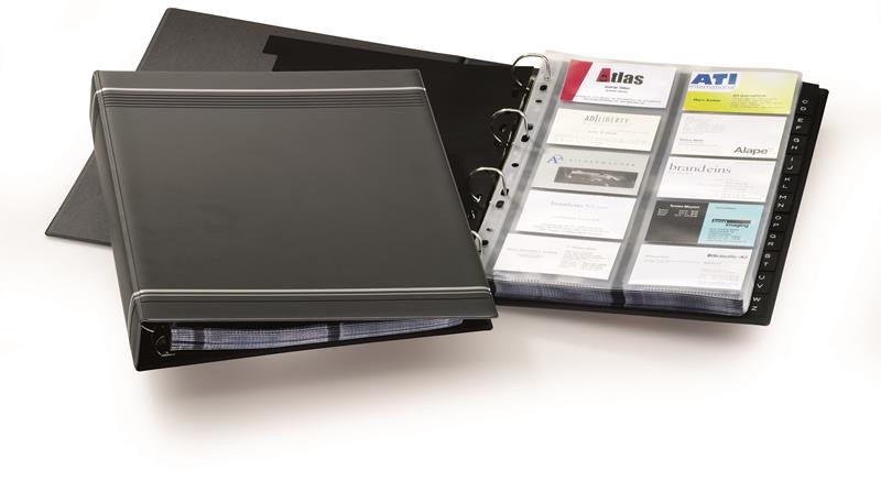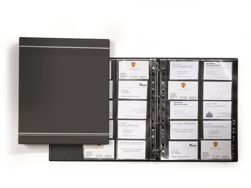 400 db 57 x 90 mm-es névjegy tárolására alkalmas.