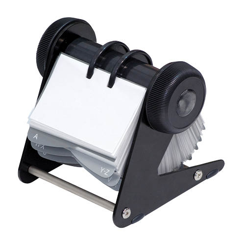400 db névjegykártya tárolására alkalmas forgatható tartó.