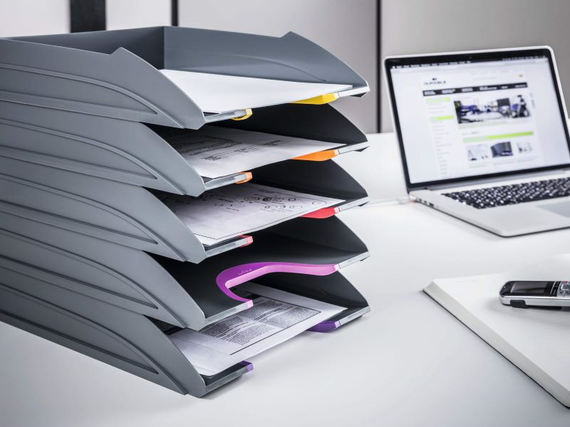 Elegáns Durable Varicolor Eco irattálca szett, mely különböző színű díszítéssel lehetővé teszi az iratok színkódos tárolását, ezáltal segíti a praktikus munkavégzést.