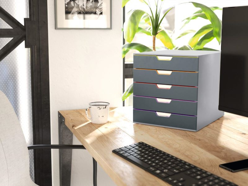 Elegáns Durable Varicolor irattartó 5 színes fiókkal, prémium minőségű műanyagból.