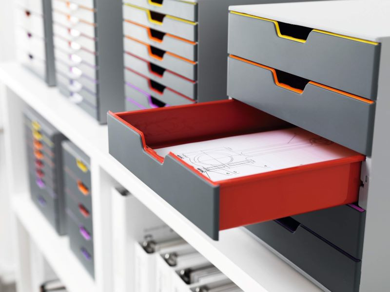 A különböző színű fiókok lehetővé teszik az iratok színkódos tárolását, ezáltal segítik a praktikus munkavégzést.
