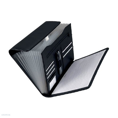 Konferenciamappa harmonika irattartóval VADO bőrhatású, fekete