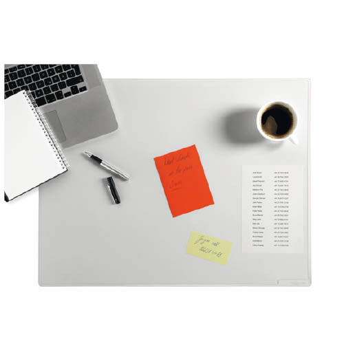 Áttetsző könyöklő. Visszatükröződésmentes. Jegyzetek, jegyzékek stb. alá. Csúszásmentes. Mérete: 65 x 50 cm