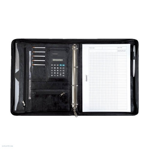 Belül gyűrűs szerkezet, számológép, írótömb.