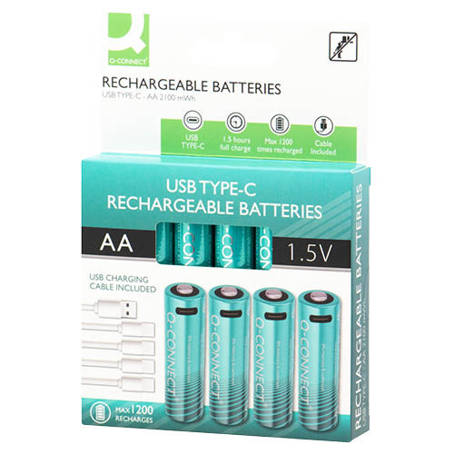 Akku ceruza AA 4 db + USB-C kábel, Q-Connect KF14129