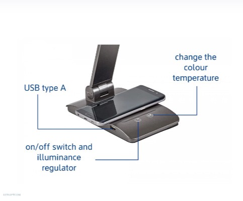 Lámpa asztali LED MAULstella állítható fényerejű, Qi töltéssel és USB csatlakozóval