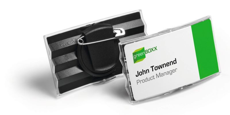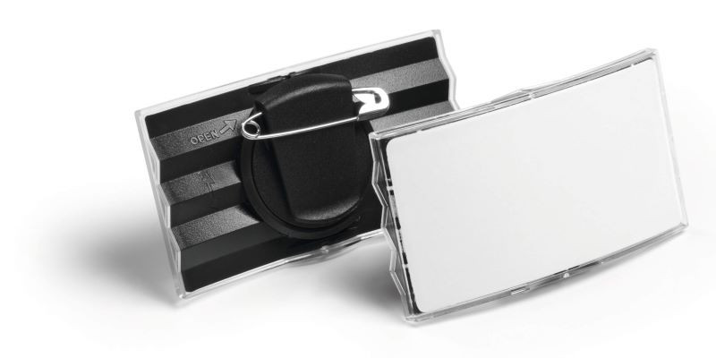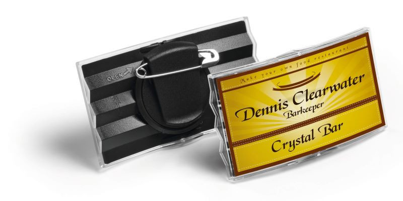 A Durable Konvex keret nélküli névkitűző tökéletesen áttetsző, víztiszta felülettel.