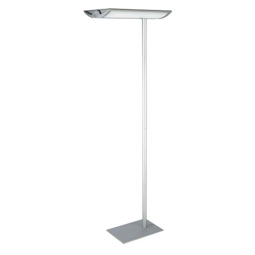 Ezüst színű, irodai állólámpa.