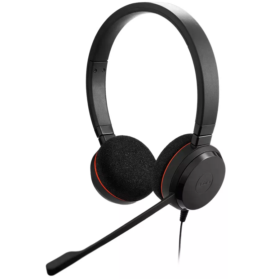 Jabra EVOLVE 20SE sztereo fejhallgató mikrofonnal és habszivacs fülpárnával.