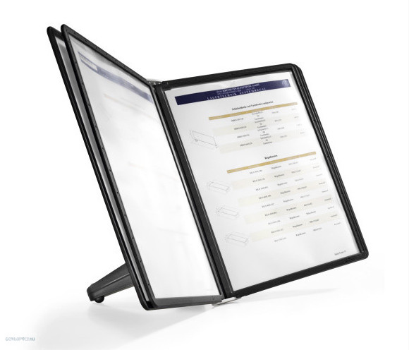 A SHERPA® SOHO egy gazdaságos, helytakarékos asztali tartó bemutatótáblákhoz, 5 db fekete A4-es panellel.