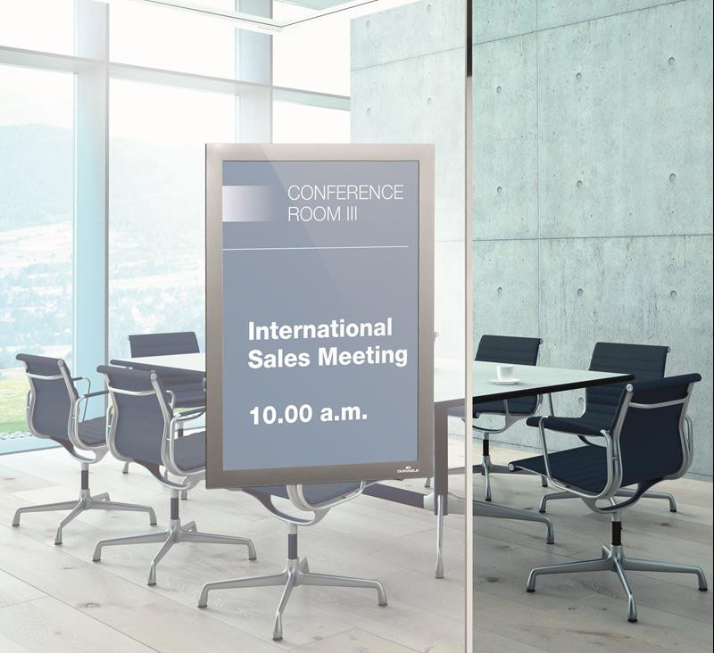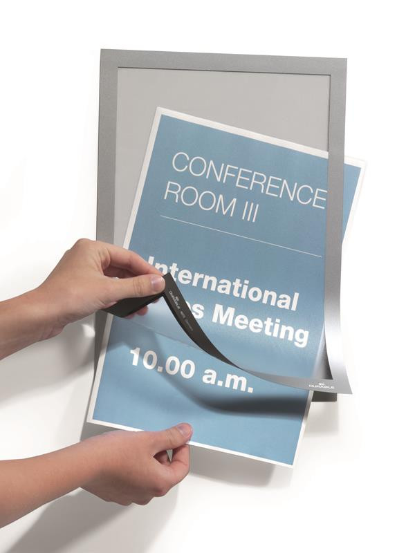 A Duraframe könnyedén áthelyezhető például üveg felületeken anélkül, hogy nyomot hagyna. Információ kihelyezés professzionális módja. A kihelyezett dokumentumok egyszerű cseréje a mágneses záródásnak köszönhetően. Könnyen kihelyezhető bármilyen sima felületre.